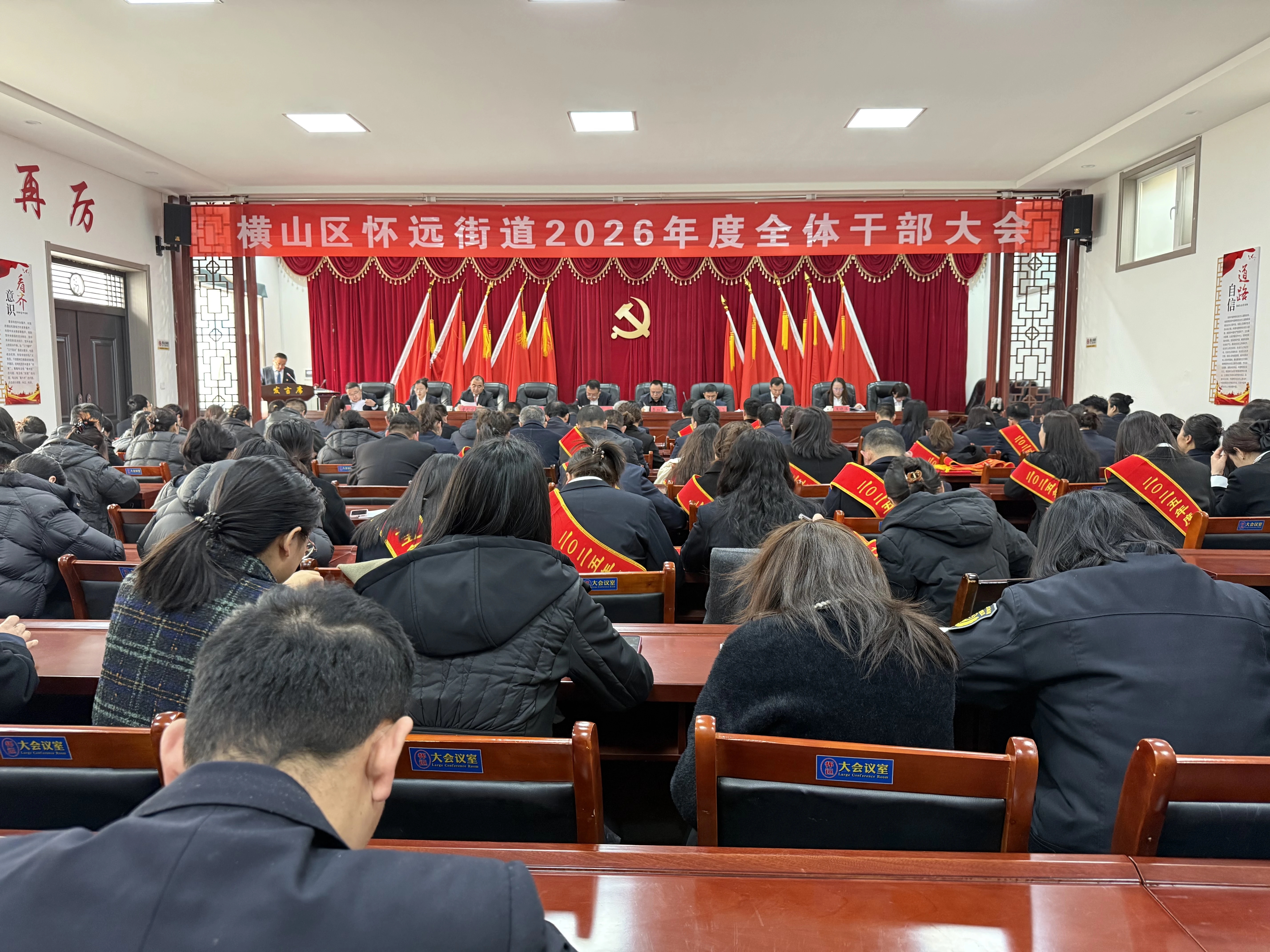 近日,怀远街道召开2026年度全体干部大会。会议全面总结2025年度工作,安排2026年度重点工作。区委二级调研员、区总工会党组书记鲁加良出席会议。