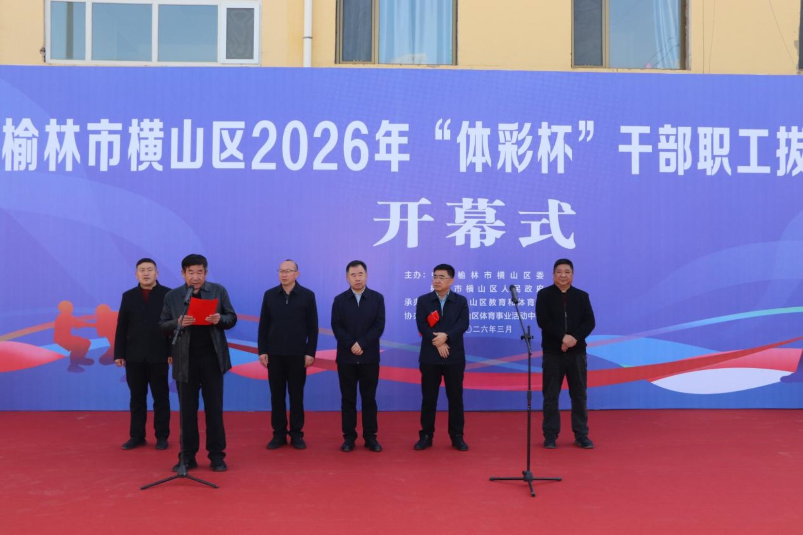 3月24日上午,2026年横山区“体彩杯”干部职工拔河比赛在区体育事业活动中心正式开赛。区政府副区长高琪,区教体局党组书记、局长李云,副局长陈永刚出席开幕式,开幕式由区体育事业活动中心主任王海波主持。